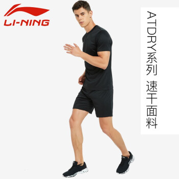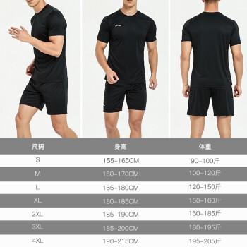 健身服>>李宁(LINING)运动套装男夏季短袖篮球服运动健身速干衣羽毛球男士足球装跑步短裤训练衣休闲夏天春秋 黑色套装 L 【165-180cm】【120-150斤】