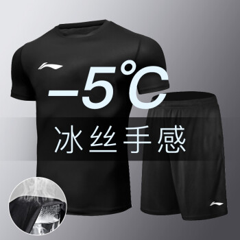 李宁(LINING)运动套装男夏季短袖篮球服运动健身速干衣羽毛球男士足球装跑步短裤训练衣休闲夏天春秋 黑色套装 L 【165-180cm】【120-150斤】 |