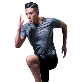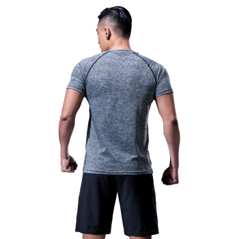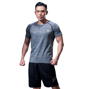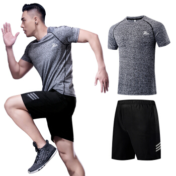 普为特POVIT 运动套装男士健身服夏季运动跑步篮球服吸汗透气速干衣短裤短袖 灰黑两件套 XL码 P-824