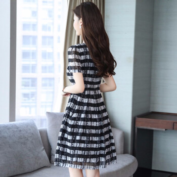 凝拉雪纺连衣裙女2020夏季流行新款时尚大码条纹衬衫裙短袖夏天气质裙子 格子 2XL(建议135-150斤)