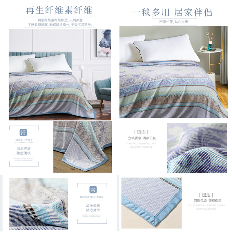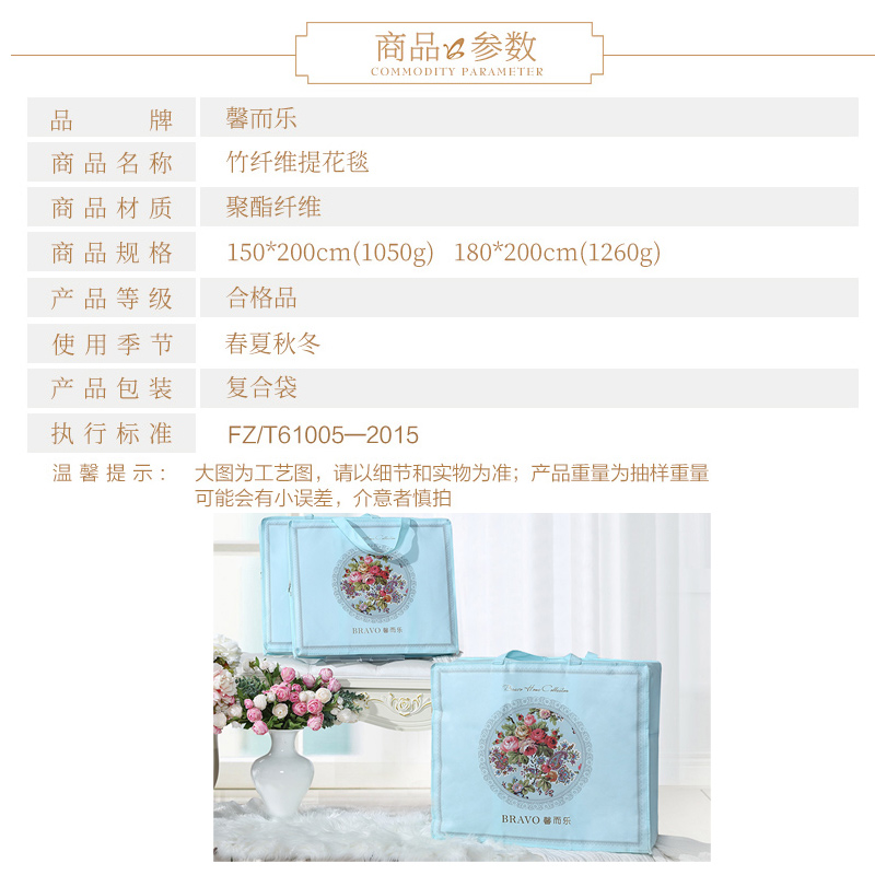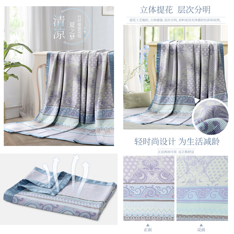 竹纤维提花毯(毯子1件)【聚酯纤维/蓝】