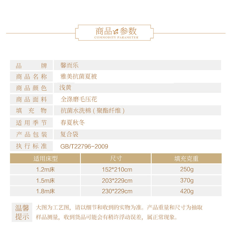 雅美抗菌夏被(被芯1件)(适合1.5米床)【面料:聚酯纤维;填充:聚酯纤维/浅黄】