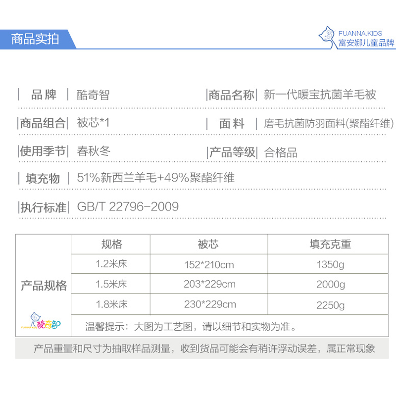 新一代暖宝抗菌羊毛被(被芯1件)(适合1.2米床)【全涤抗菌磨毛防羽/白】