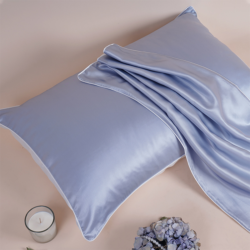 【超值单品】一对装单面真丝枕套桑蚕丝纯色丝滑护肤柔软奢华枕套【A面桑蚕丝B面聚酯纤维/蓝色】