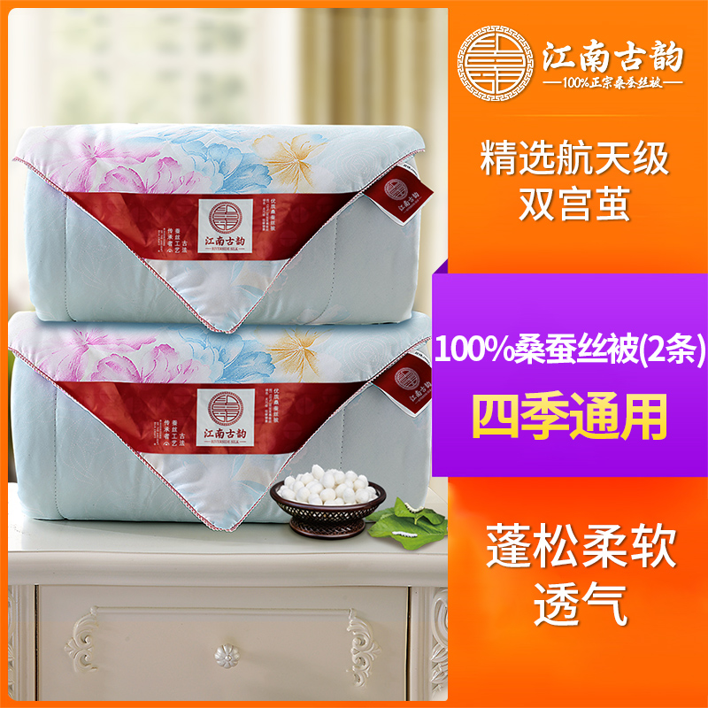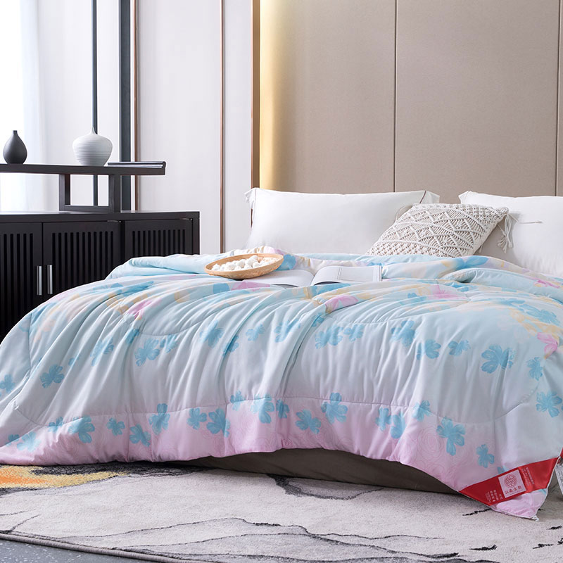 【超值单品】100%桑蚕丝花语花开子母被2.5+3.5斤【100%桑蚕丝/蓝色】