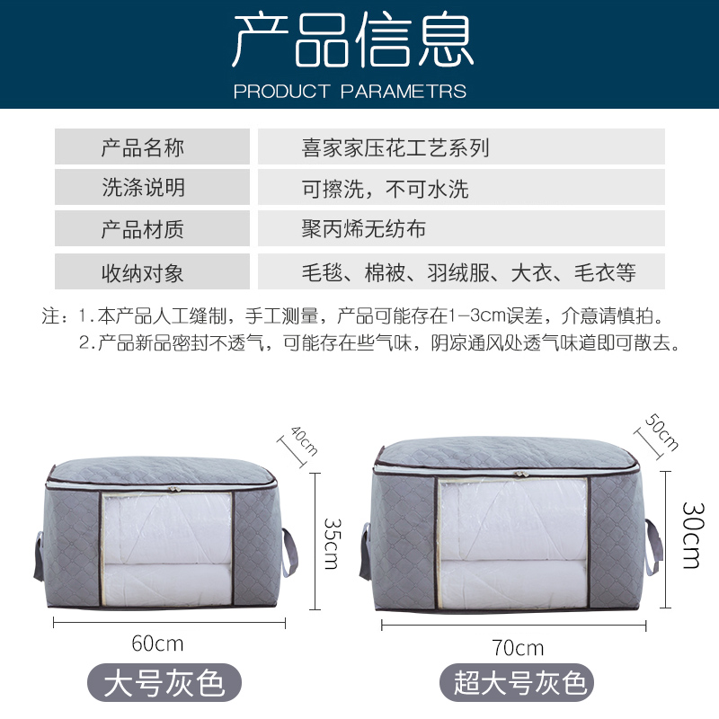 4个衣物棉被收纳袋【无纺布/灰色】
