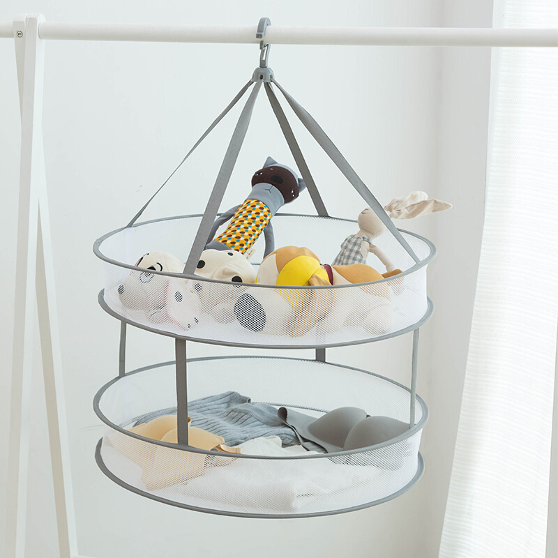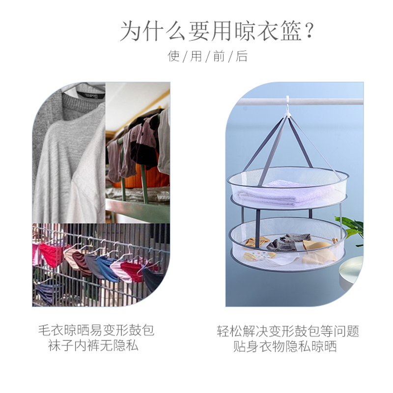 羊毛衫晒衣篮【涤纶+不锈钢扁圈弹簧/灰色有围】