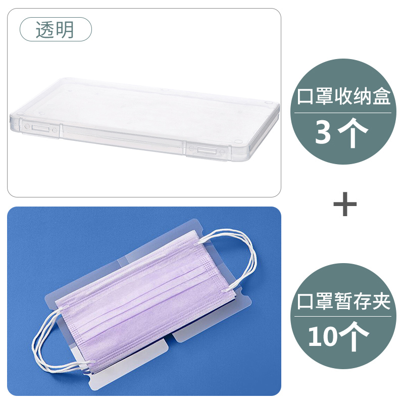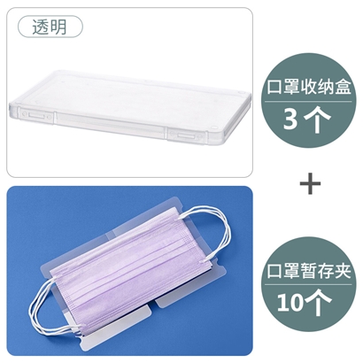 口罩收纳盒3个+收纳夹10个【PP/透明色】