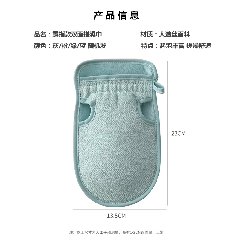 双面搓澡巾露指款5个【人造丝面料/颜色随机】