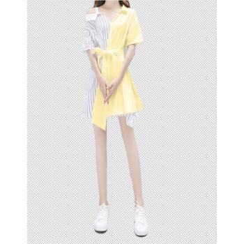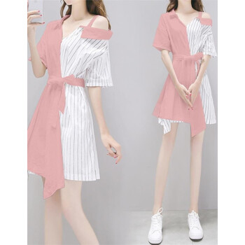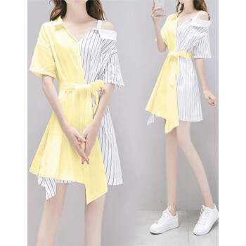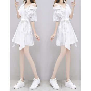 连衣裙>>予蒙 一字肩修身吊带连衣裙女夏季2020新款韩版流行小个子显瘦女装气质超仙名媛夏装衬衫裙子 白色 M(建议100-110斤)