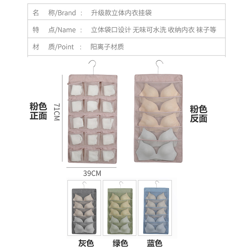 双面袜子内衣收纳袋2个【阳离子/颜色自选】