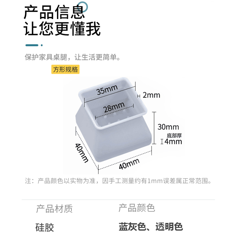 硅胶桌脚垫16个方形【硅胶/颜色自选】