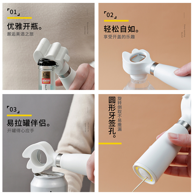 牙签筒开瓶器【PP+304不锈钢/颜色随机】