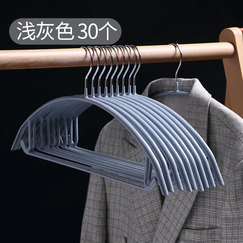 圆弧防滑衣架30个【高锰钢/浸塑/浅灰】