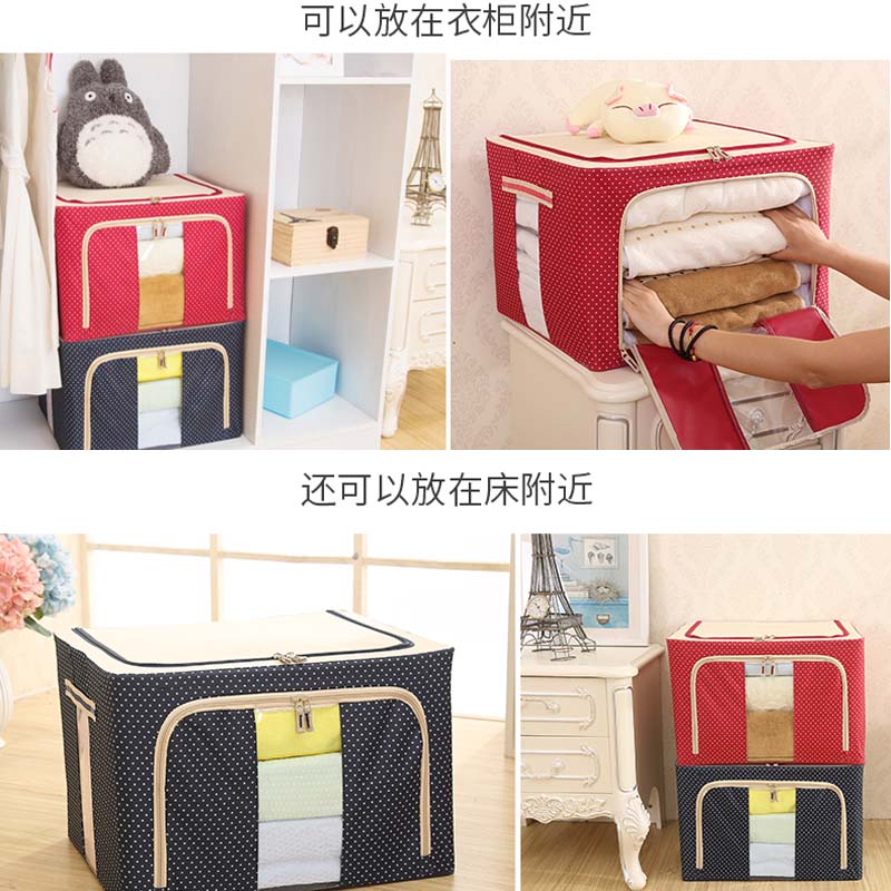 带钢架牛津布收纳箱2个【牛津布+三钢架/藏青色点点】