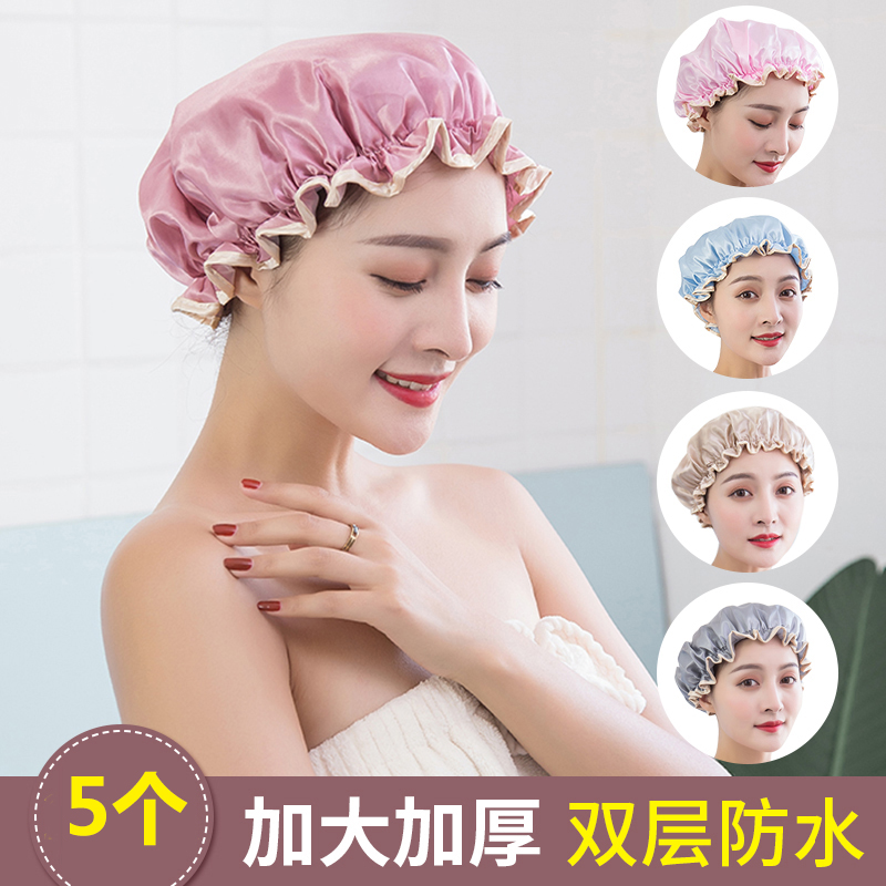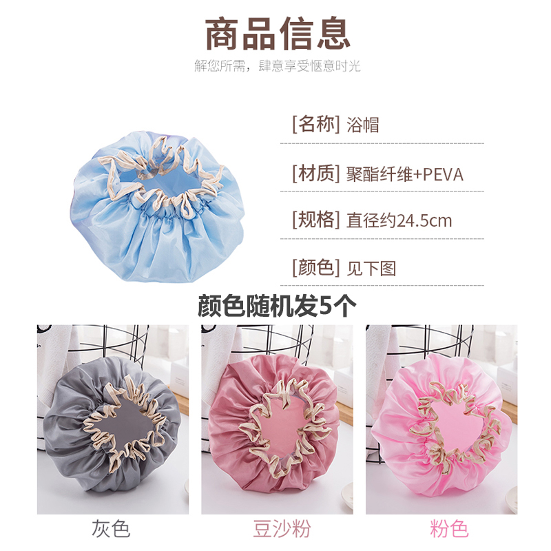 加厚防水浴帽5个【聚酯纤维+PEVA/颜色随机】