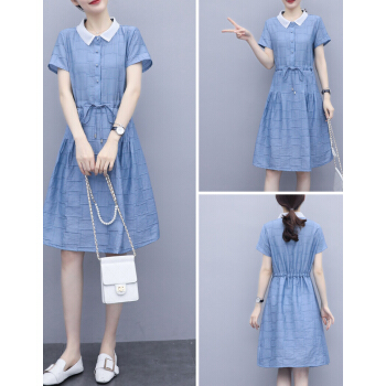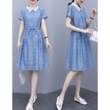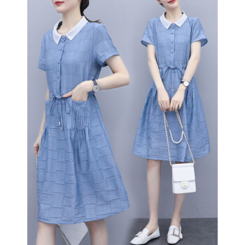 婪澈连衣裙女2020女装夏季新款韩版时尚休闲洋气修身裙子时尚显瘦裙子女 蓝色 请下正确尺码
