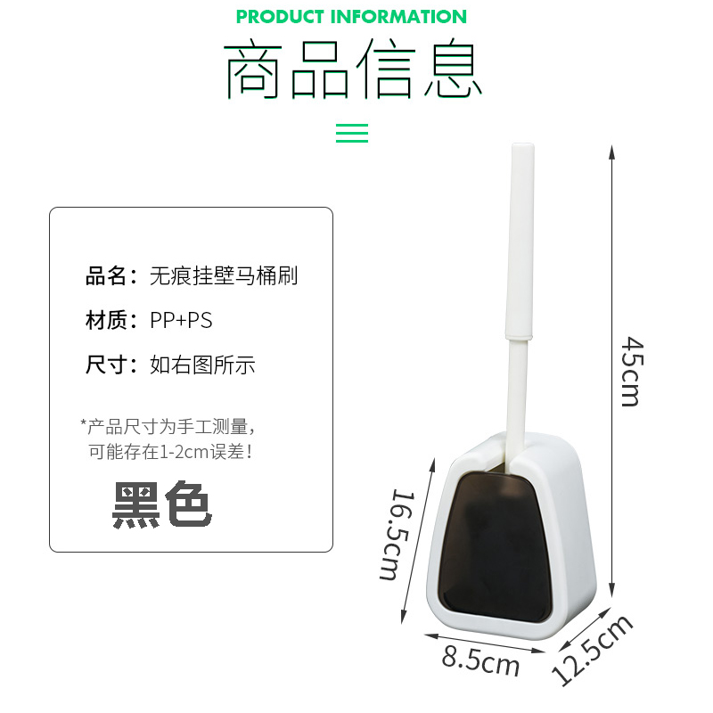 壁挂式马桶刷2个【PP+PS/黑色】