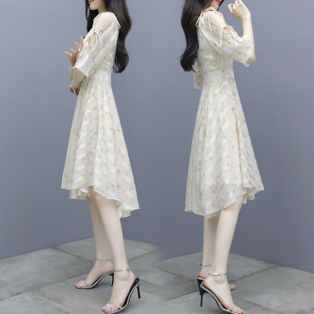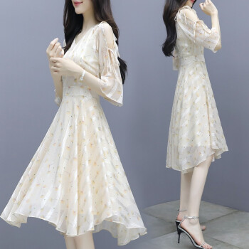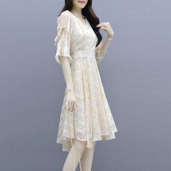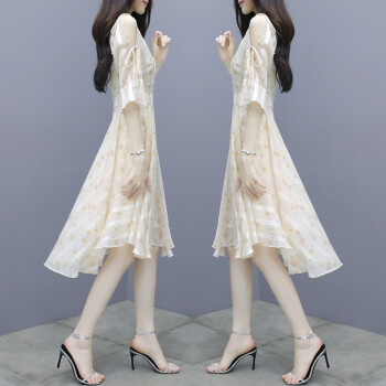 莱倪晟纳短袖连衣裙女装2020夏季新款韩版收腰显瘦印花性感沙滩裙子女潮 图片色 请拍正确尺码
