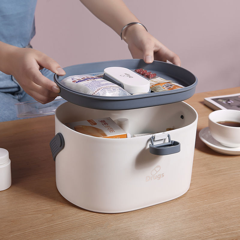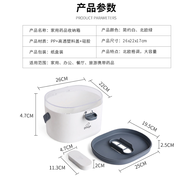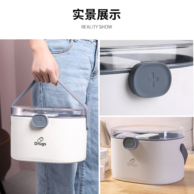 家用药品收纳箱双层【PP+高透塑料盖+硅胶/简约白】