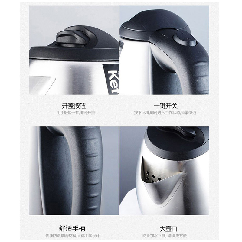 不锈钢电热水壶自动断电烧水壶1.8L【食品级不锈钢/不锈钢色】