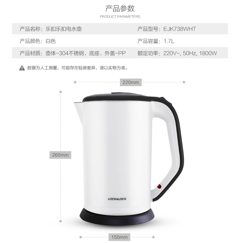 乐扣乐扣电热水壶1.7L【不锈钢/白色】