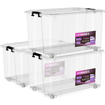 清野の木 高透塑料收纳箱 56L三个装XL特大号 透明加厚衣物整理箱玩具储物箱