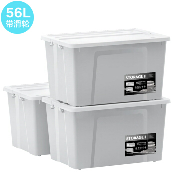清野の木 56L灰色三个装特大号 塑料收纳箱整理箱环保加厚储物箱