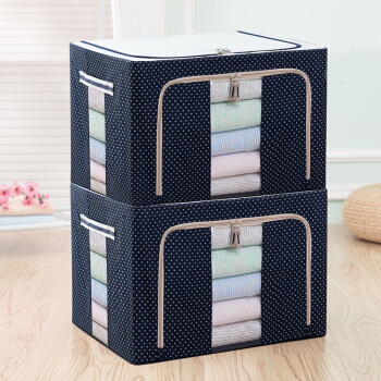 晟旎尚品 88L 特大号2只装牛津布双面可视收纳箱 衣服杂物整理箱布艺收纳盒储物箱 藏青圆点