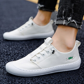 帆布鞋>>男鞋夏季2020新品鞋子男潮鞋户外休闲鞋小白鞋透气帆布鞋冰丝板鞋老爹鞋一脚蹬休闲懒人老北京布鞋 MX-H01白色 41