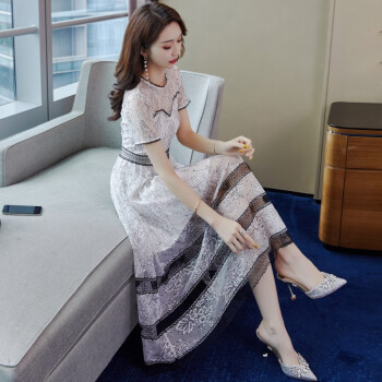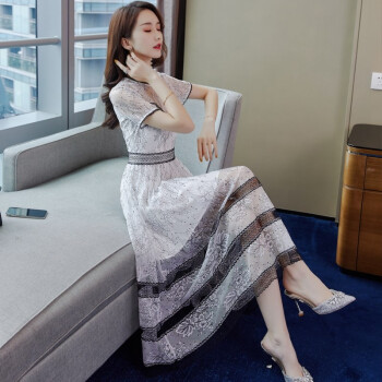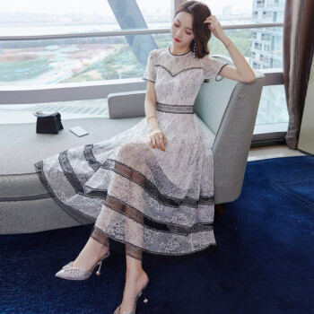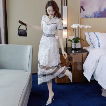 巷前 连衣裙2020新款夏季女装名媛仙女超仙蕾丝网纱收腰显瘦显高气质连衣裙子中长款 白色 M