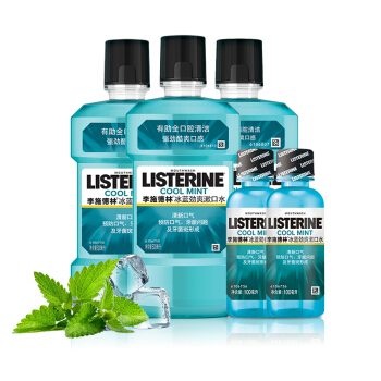 李施德林 (Listerine) 漱口水冰蓝劲爽口味清新口气深层清洁 (500mL*3瓶+100mL*2瓶)套装