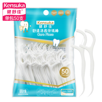 健舒佳 牙线棒 舒适洁齿高分子圆线50支/包 清洁齿缝超细牙线剔牙签 典雅款