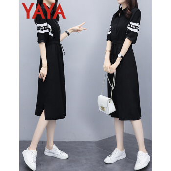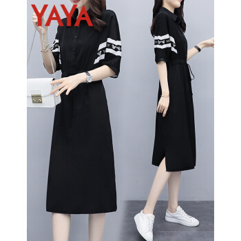 鸭鸭服饰(yaya)连衣裙女2020女装夏季新款轻熟风收腰显瘦气质洋气法式流行夏天长裙子 图片色 请选择正确尺码 |