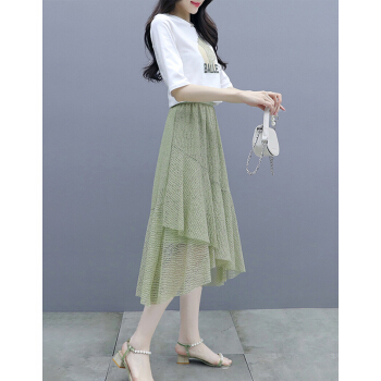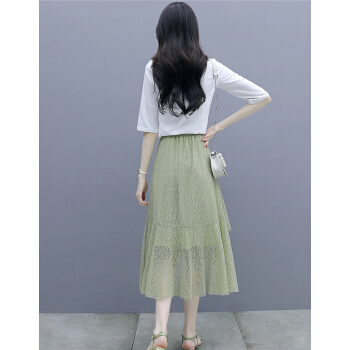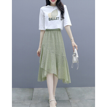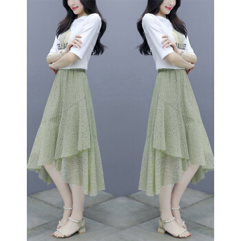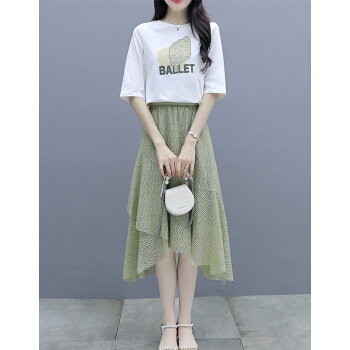 莱倪晟纳短袖连衣裙女装2020夏装新款韩版宽松显瘦气质女神范两件套装中长裙子 绿色 请拍正确尺码