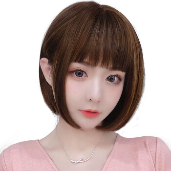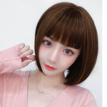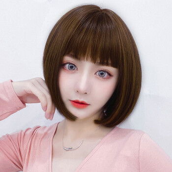 假发/配件>>蔓茵假发女短发bobo头真发丝递针中分仿真空气刘海波波头自然逼真圆脸假发套网红学生黑 自然黑【仿真发丝】