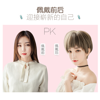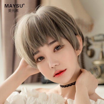 美元素 假发女狗啃式二次元刘海短发自然逼真奶奶灰不规则bobo头女士假发套 图片色(青木亚麻灰)