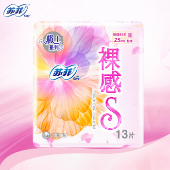 苏菲Sofy 极上裸感S极薄棉柔超柔软超薄特别量多日用卫生巾250mm 13片