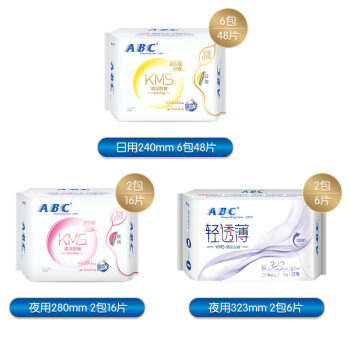 ABC KMS纤薄棉柔日夜组合10包70片(日用48片+夜用22片)卫生巾套装