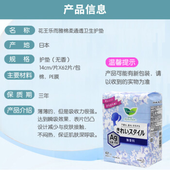 花王(KAO) 花王护垫进口日本花王乐而雅卫生巾护垫银离子14cm62片 2包