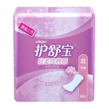 护舒宝(Whisper)超薄 轻柔纯棉感卫生护垫 无香 80片 ( 清爽透气)