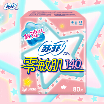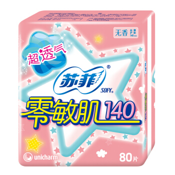 苏菲Sofy 零敏肌丝薄柔滑无香型超透气超薄护垫卫生巾140mm 80片