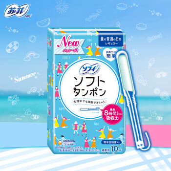 苏菲Sofy 日本进口导管式轻柔内置入棉棒无感卫生棉条游泳运动 10支装(普通吸收量非卫生巾)