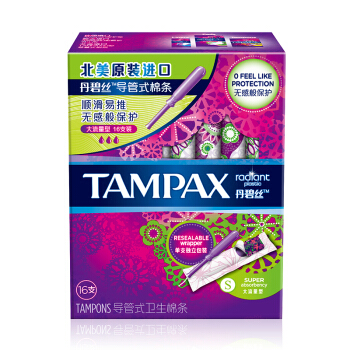 卫生棉条>>丹碧丝(Tampax)导管式 幻彩系列大流量卫生棉条游泳 16支装 ( 美国进口 游泳卫生巾)