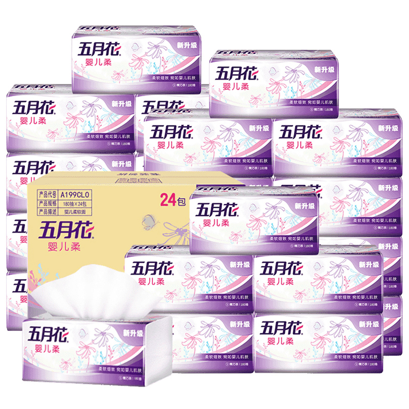 五月花抽纸2层180抽24包箱装