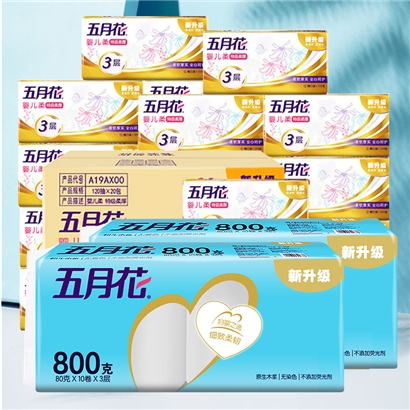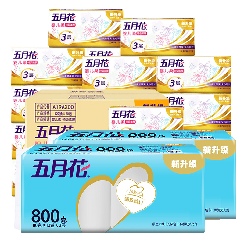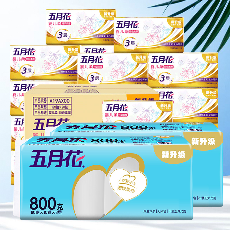 五月花金装抽纸3层120抽20包+卷纸80g20卷(分两个包裹发货)