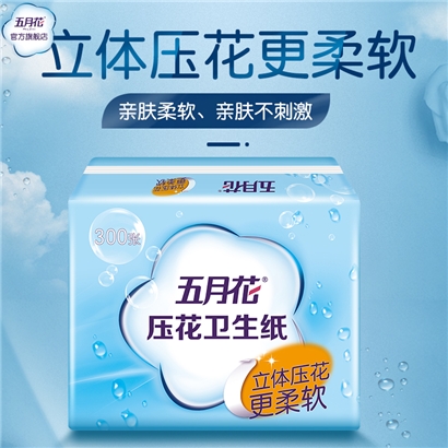 五月花新型压花平板卫生纸300张8包