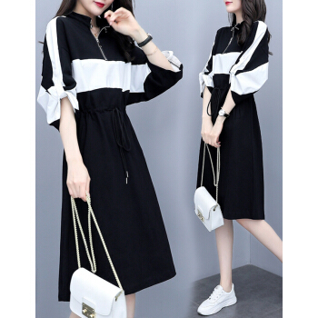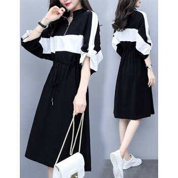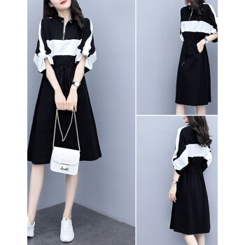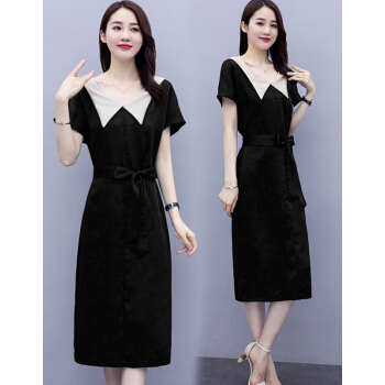 婪澈连衣裙女2020夏装新款韩版中长款连衣裙女气质系带高腰显瘦减龄长裙女潮 图片色 请拍正确尺码