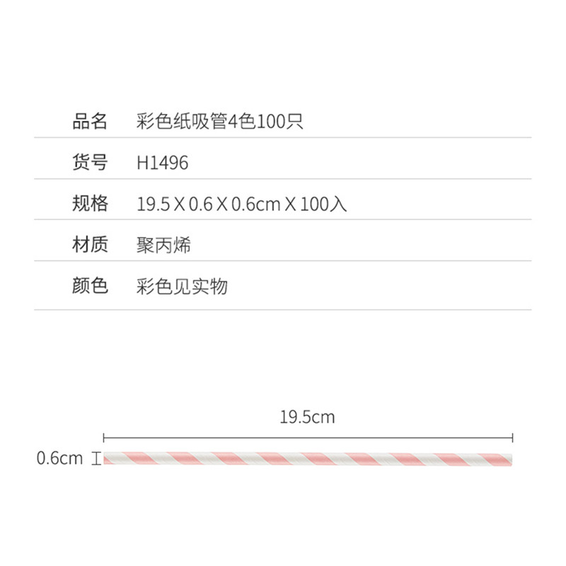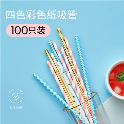 彩色纸吸管4色100只【聚丙烯/图片色】