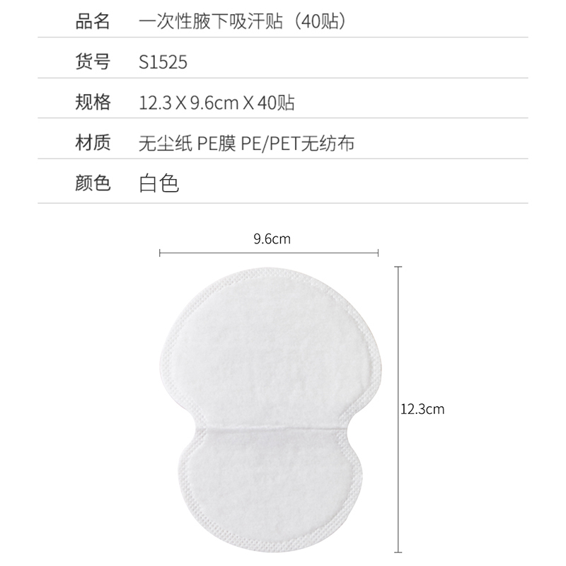 一次性腋下吸汗贴(40贴)【无尘纸 PE膜 PE/PET无纺布/图片色】
